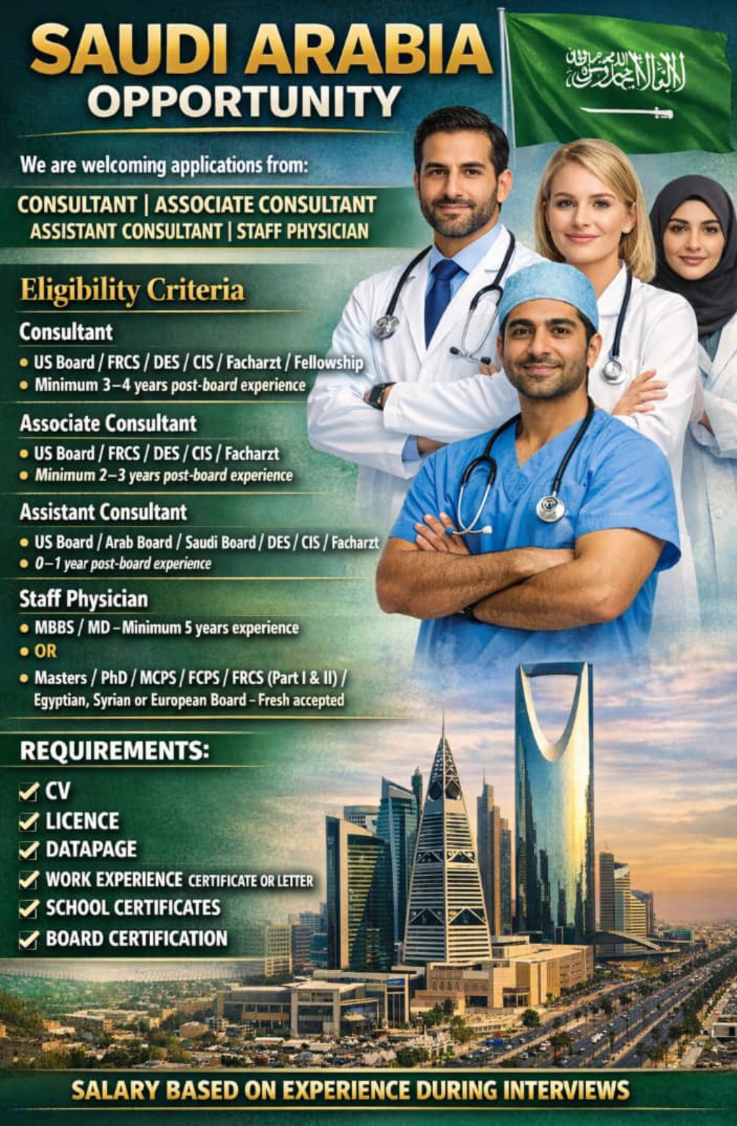 We are welcoming applications for highly qualified Medical Consultants. This role is for established medical professionals with significant post-board experience seeking to advance their careers in a premier Saudi Arabian healthcare environment.